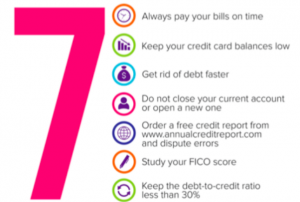 7 Tips to Improving Your Credit Here are seven great tips to maximize your credit. Number one, and most important, always pay your bills on time. Number two, keep your credit card balances low. Number three, get rid of debt faster. That means try to pay off your debt sooner than the allotted time given. If they give you two years to pay off your car, pay it off sooner. Number four, do not close your current account or open a new one. Number five, order a free credit report from www.annualcreditreport.com and dispute errors. Number six, study and know your FICO score. Number seven, keep the debt to income ratio less than 30%. All of these seven tips are sure to help you improve your credit score and maximize your credit. For more detailed information on how to maximize your credit call/email Alex.